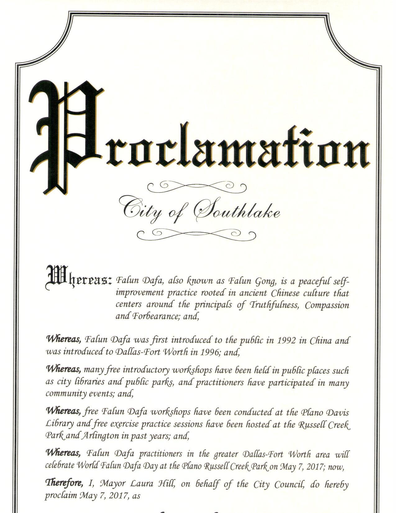 圖11:美國德州南湖市宣布「法輪大法日」 |