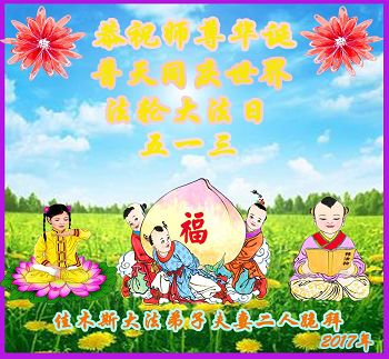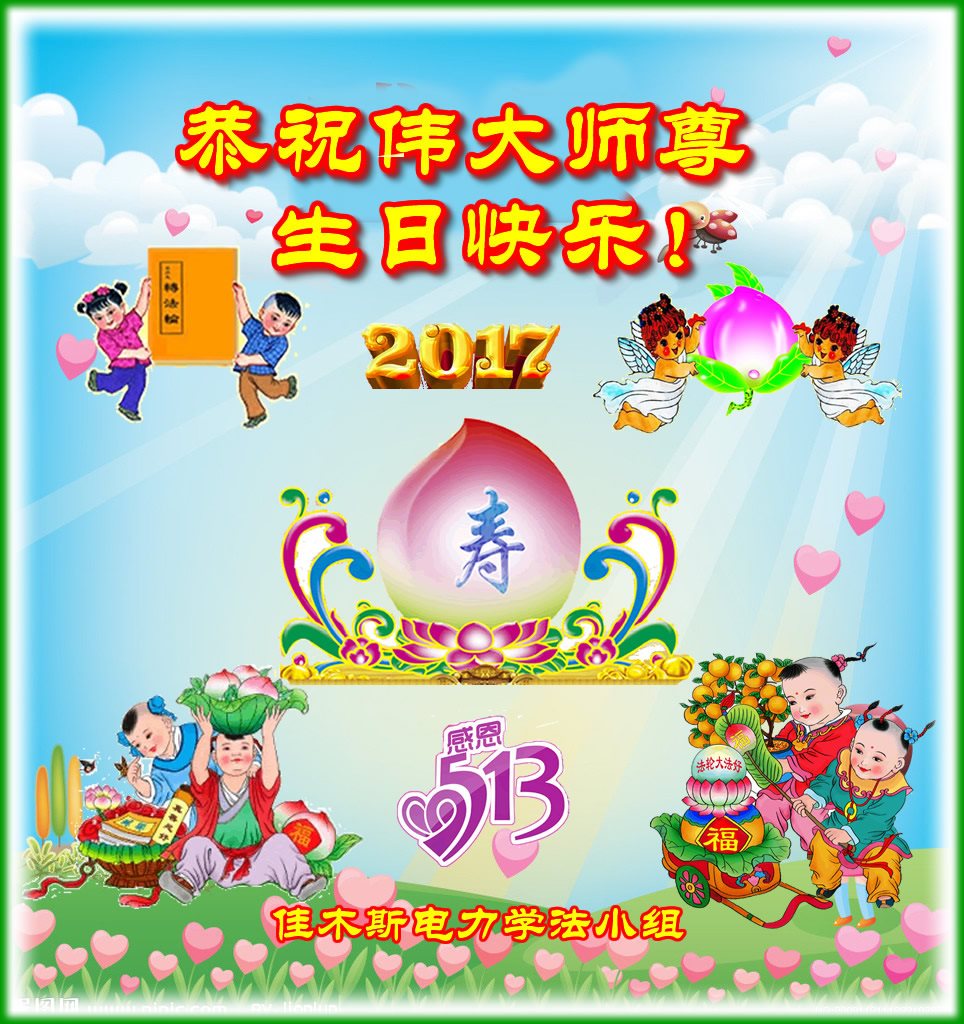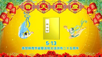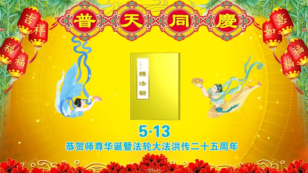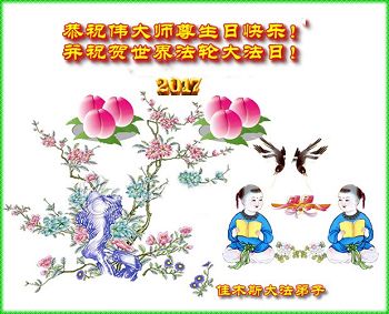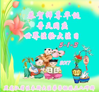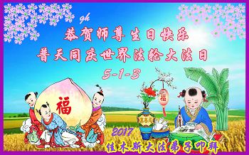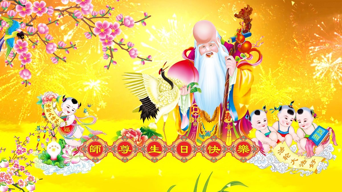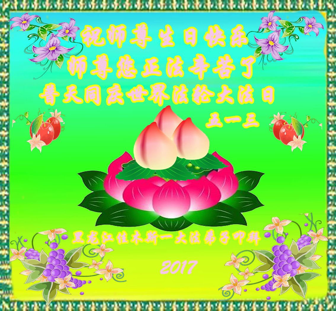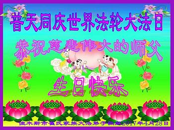 在這普天同慶的日子裏,弟子們恭祝慈悲偉大的師父生日快樂!生日快樂!恭祝世界法輪大法日!
