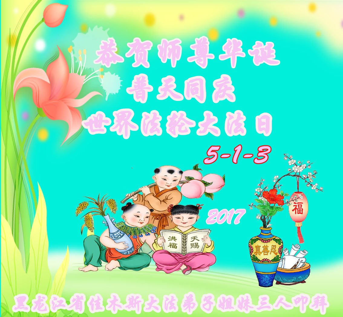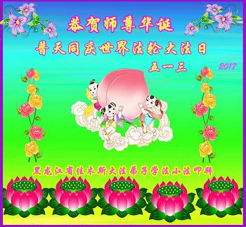 黑龍江佳木斯大法弟子恭賀世界法輪大法日!恭祝師父生日快樂!
