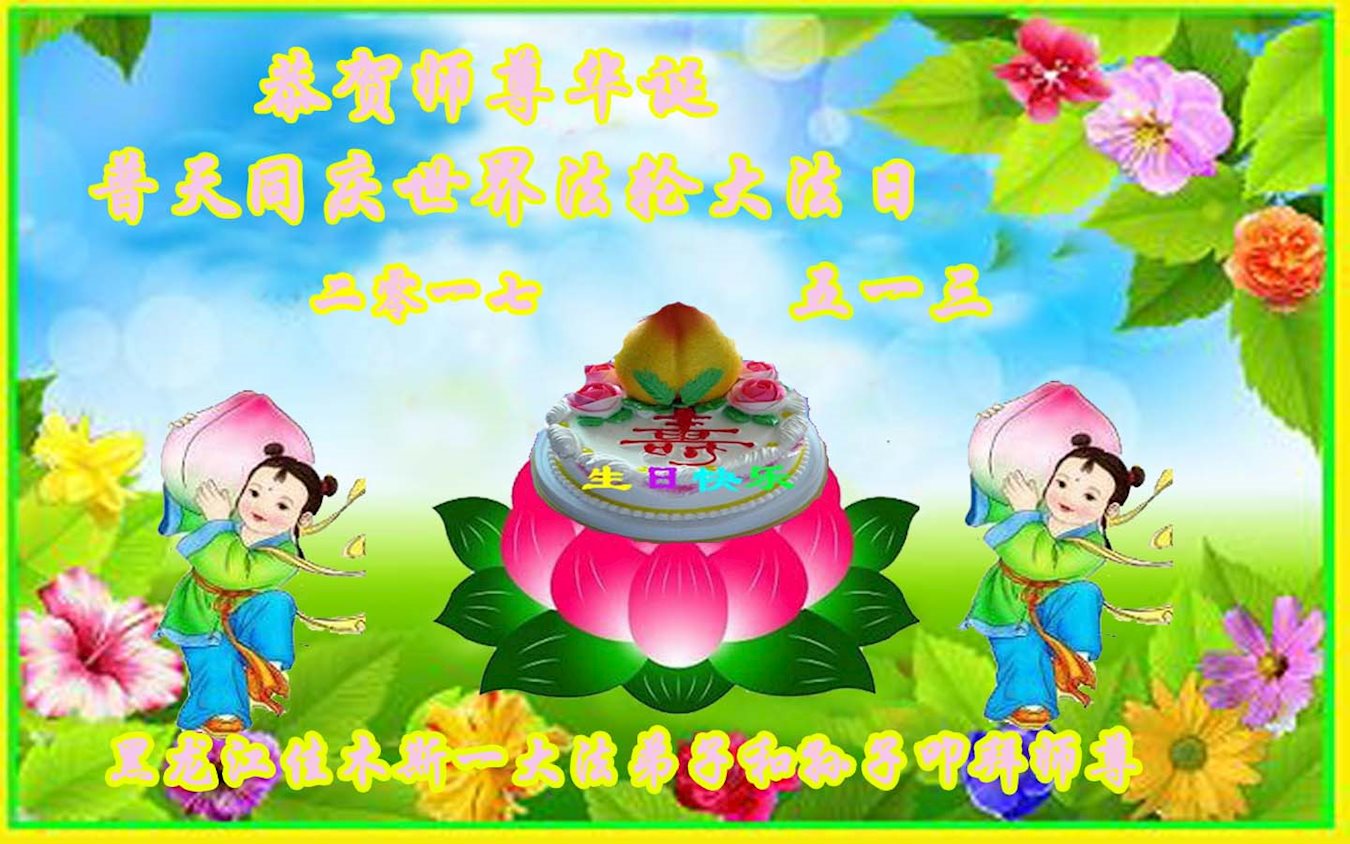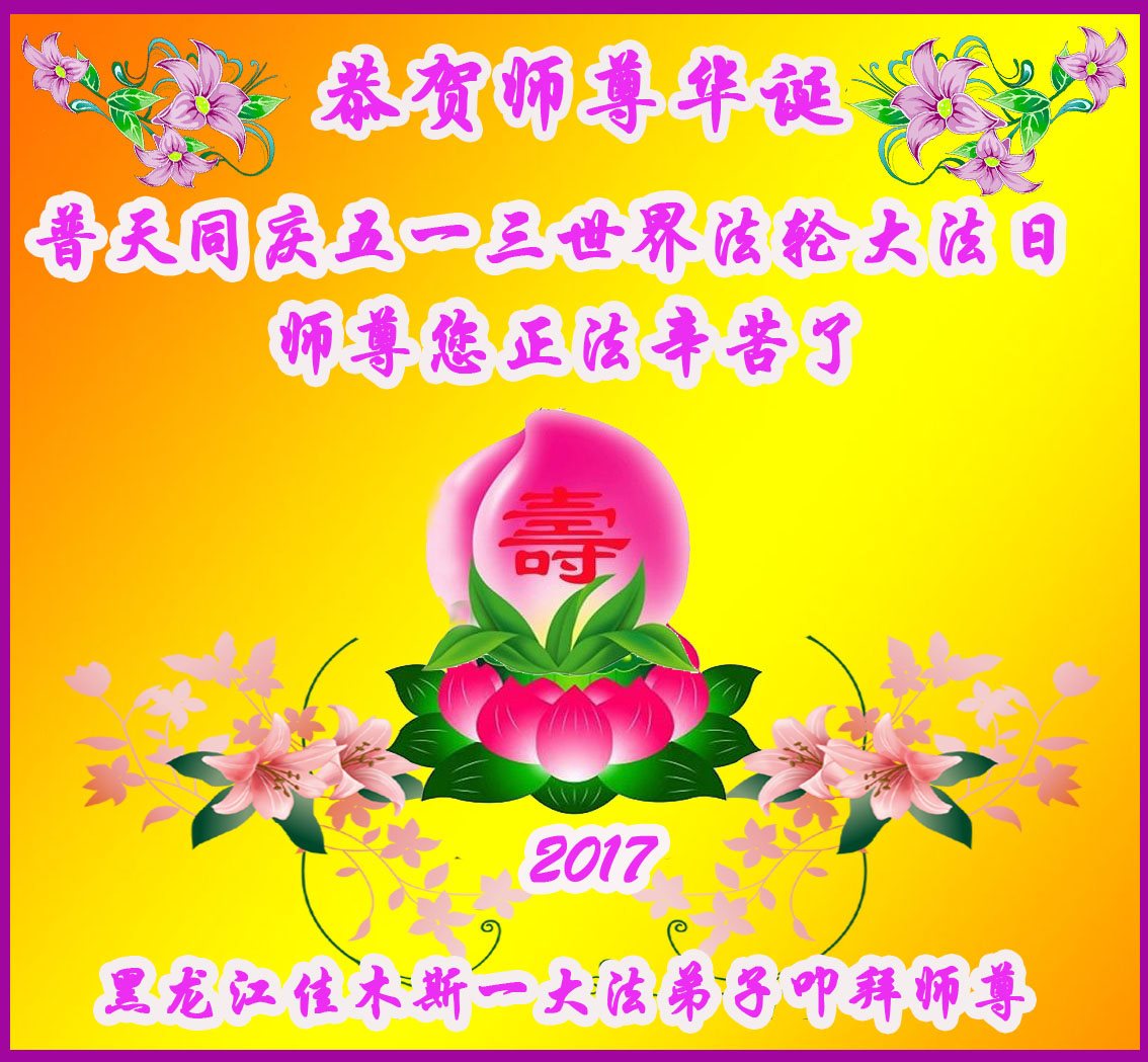 黑龍江省佳木斯大法弟子恭祝偉大師尊生日快樂!並祝賀世界法輪大法日!