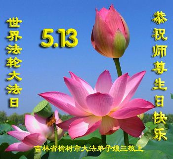 吉林省四平市大法弟子及全家恭祝師父生日快樂!、感恩師父慈悲救度。弟子叩拜師恩!