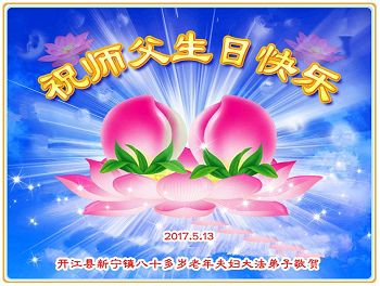 四川省達州市開江縣新寧鎮八十多歲老年夫婦大法弟子恭祝師父生日快樂!
