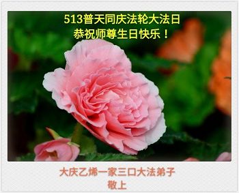 黑龍江省大慶乙烯一家三口大法弟子恭賀法輪大法日!恭賀大法洪傳25週年!恭祝師尊生日快樂!