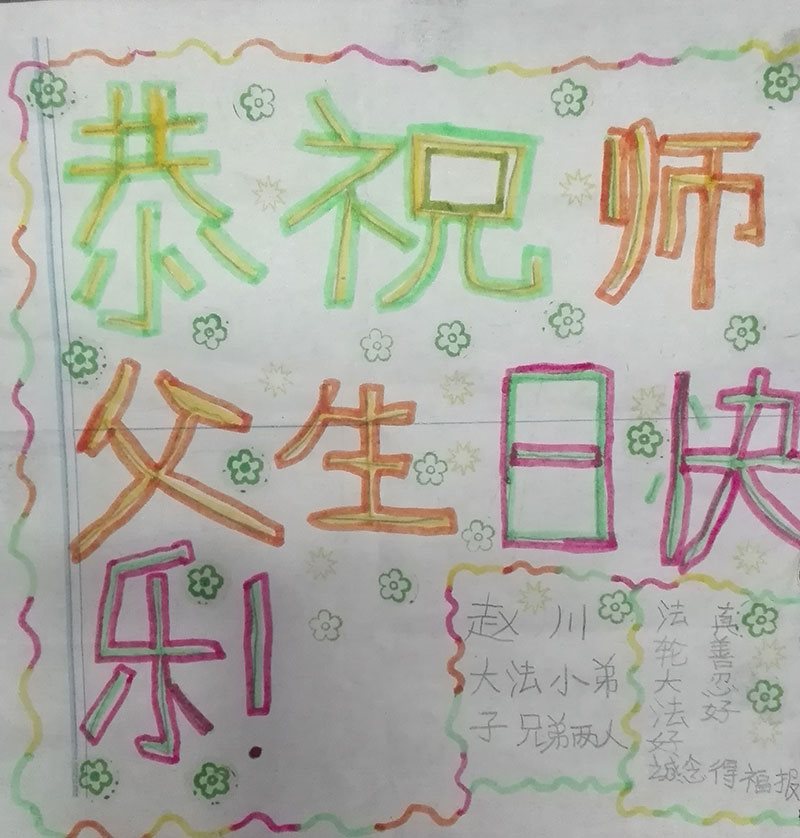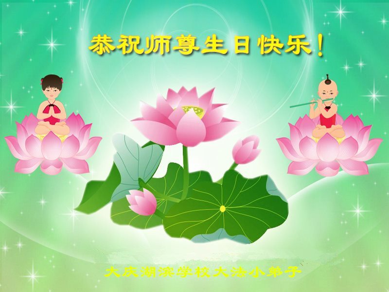 黑龍江省大慶湖濱學校大法小弟子恭祝師尊生日快樂!
