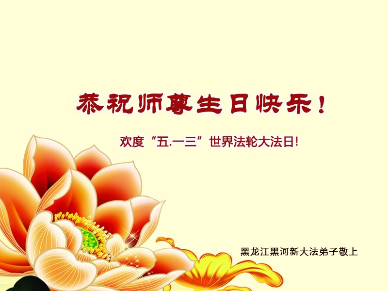 黑龍江省黑河市新大法弟子恭賀法輪大法日!恭祝師尊生日快樂!