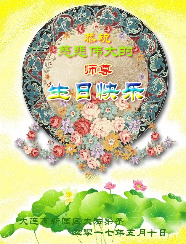 遼寧省大連高新園區大法弟子恭祝師尊生日快樂!普天同慶世界法輪大法日!