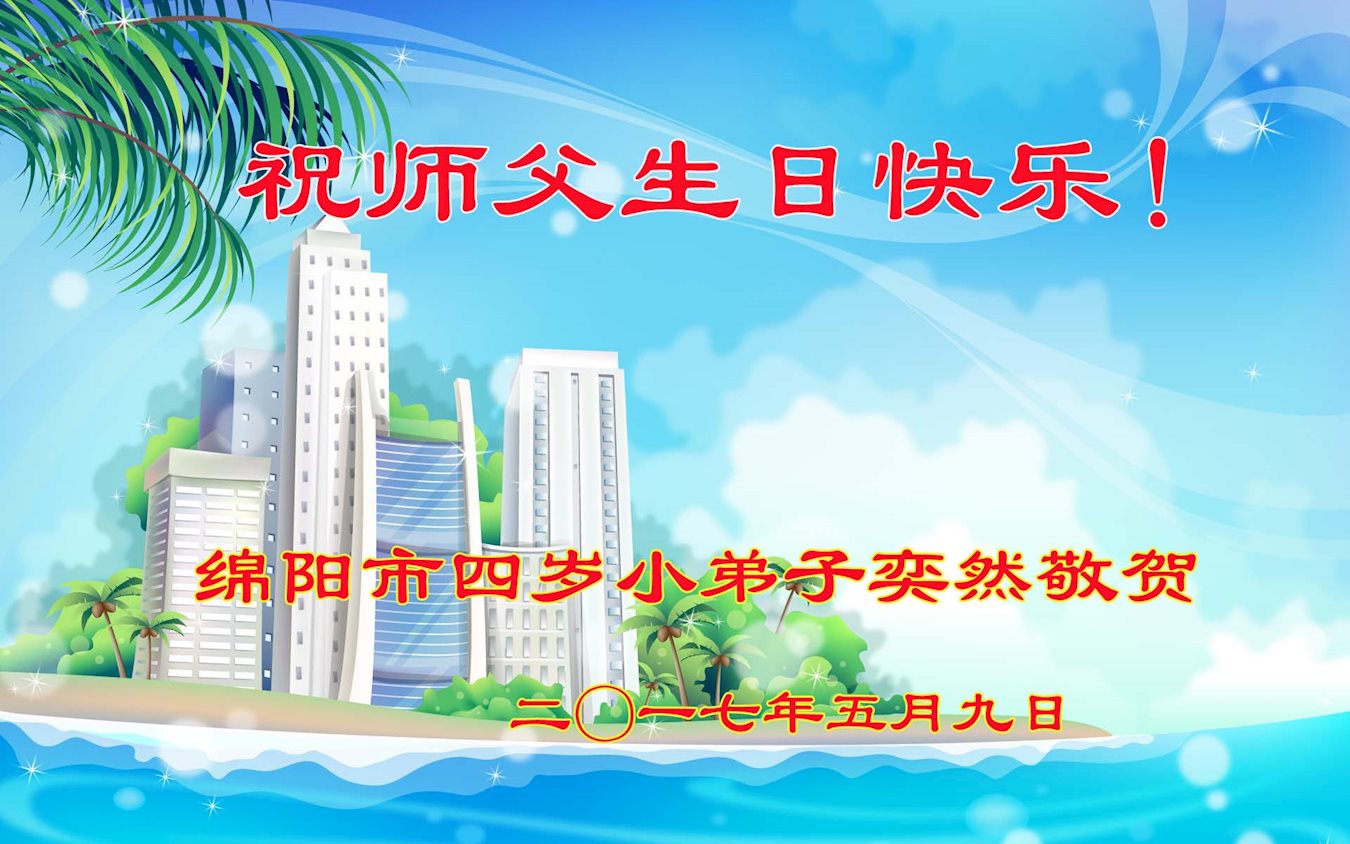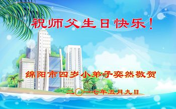 四川省綿陽市一四歲大法小弟子敬賀師父生日快樂!