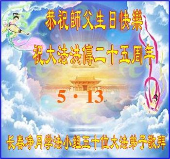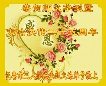 吉林省長春三人學法小組大法弟子恭祝師父華誕暨大法洪傳二十五週年!