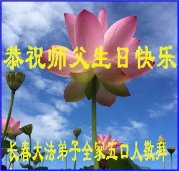 吉林省長春大法弟子全家五口人恭祝師父生日快樂!