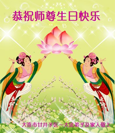 遼寧省大連市甘井子區一大法弟子及家人恭祝師尊生日快樂!