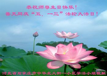 河北省石家莊市一學法小組恭祝師尊生日快樂!普天同慶五一三法輪大法日!