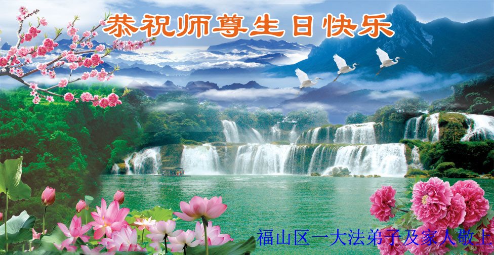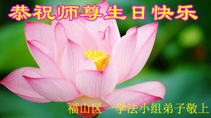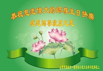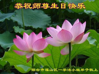 山東煙台市福山區一學法小組大法弟子恭祝師尊生日快樂!
