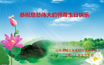 山東省濰坊市諸城市三名農村大法弟子恭祝師尊生日快樂!