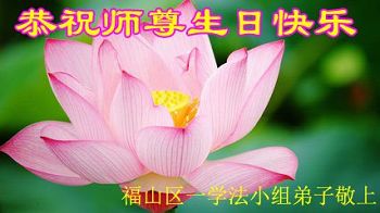 山東煙台市福山區一學法小組弟子恭祝師尊生日快樂!