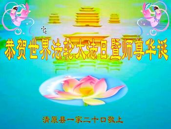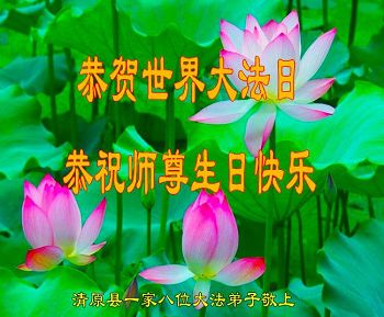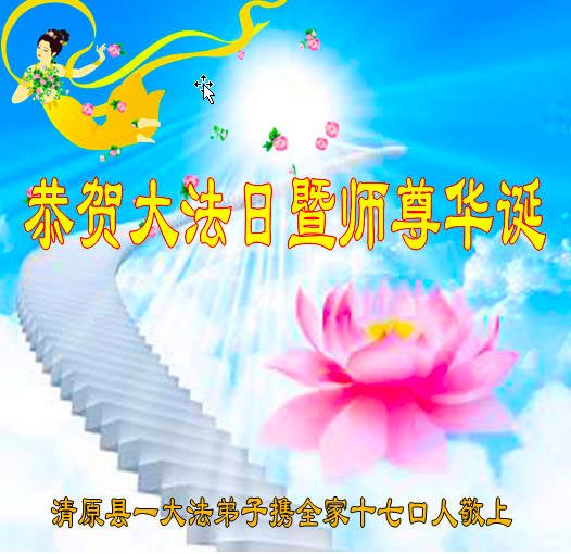 在這普天同慶同祝同頌的世界法輪大法日暨──師尊的華誕之日,弟子以最誠摯的感恩之心,恭祝慈悲偉大的師尊生日快樂!師尊您辛苦了。弟子想念您。千萬年的輪迴等待,終於等到了師父,得到了大法,成了師尊正法時期的大法弟子。師尊請您放心:弟子一定不辱使命,兌現史前誓約,學好法,多救人,儘快提升自己,達到師尊對我的修煉標準要求,功成圓滿,跟師尊回家!