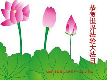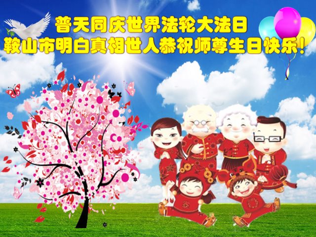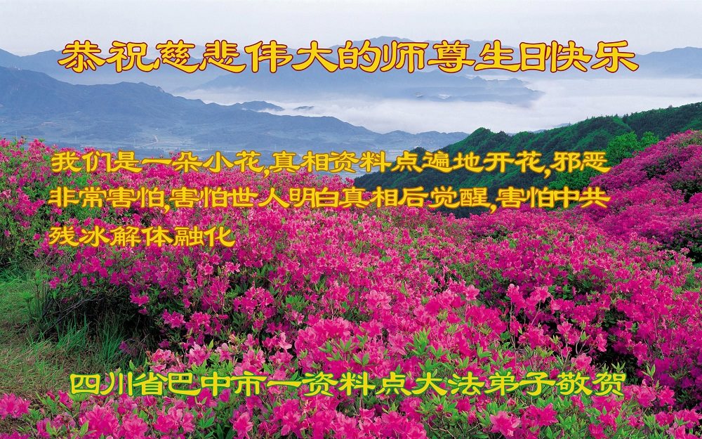 恭祝師父生日快樂!感謝師尊的慈悲救度!我們一定手挽手肩並肩互相配合,努力做好三件事,將大法真相傳遍各個角落,給還未得救的眾生一個機會,再一個機會……直到師尊正法結束,圓滿隨師還。