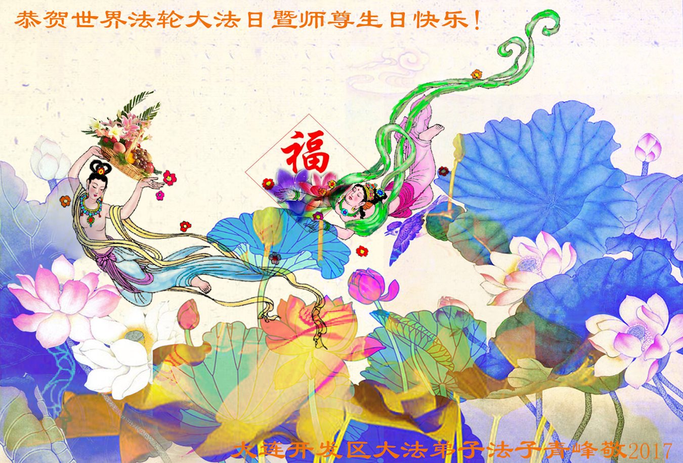在這普天同慶、同頌、舉世矚目、全宇宙眾生歡慶的大喜日子,謝謝師尊對弟子的無量慈悲與呵護,雖然一路磕磕絆絆,摔摔打打,但是,弟子憑著對大法的堅信,緊跟師尊的步伐,走到了今天,兌現著自己的誓約。弟子知道還有很多人心沒有徹底去掉,如懶惰心、抱怨心、急躁的心,不寬容的心、不耐煩的心、看不起同修的心等,弟子相信一定會在大法中歸正,不辜負師尊的期盼,叩謝師尊為弟子的付出!
