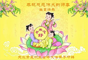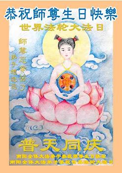 師尊您辛苦了!弟子想念您!弟子一定抓緊做好三件事,請師尊放心。弟子代表南陽全體大法弟子及全家向偉大的恩師問好!恭祝師尊生日快樂!盼望師尊早日回來。