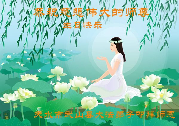 在世界法輪大法日來臨之際,甘肅武威大法弟子恭祝師父生日快樂!得救的眾生普天同慶法輪大法日。也願眾生早明真相,得到救度。願師父多一些欣慰少一些操勞 。