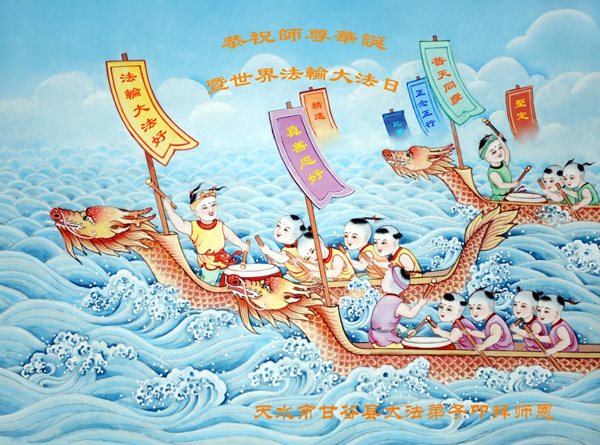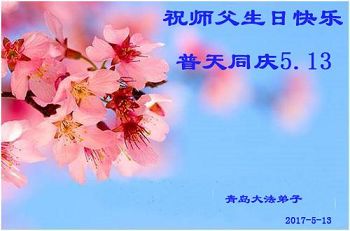 山東青島大法弟子恭祝師尊生日快樂!普天同慶世界法輪大法日!