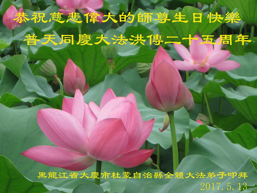 黑龍江大慶市杜爾伯特蒙古族自治縣全體大法弟子恭祝師尊生日快樂!恭賀世界法輪大法日!