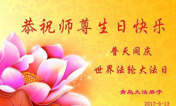 山東青島學法小組大法弟子恭祝慈悲偉大的師尊生日快樂!