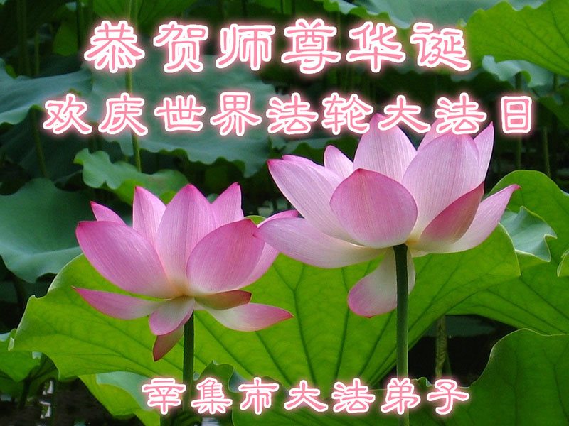 山東省煙台市萊陽市某鎮全體大法弟子恭祝慈悲偉大的師尊生日快樂!普天同慶同賀世界法輪大法日!