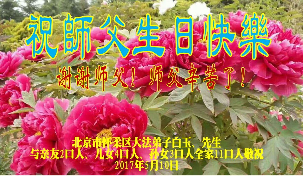 北京市懷柔區大法弟子白玉全家11口人謝謝師父!祝師父生日快樂!師父辛苦了!