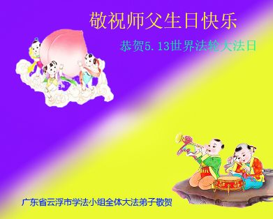 廣東省雲浮一大法弟子全家跪拜恭祝師父生日快樂!普天同慶世界法輪大法日!叩謝師尊慈悲救度之恩!