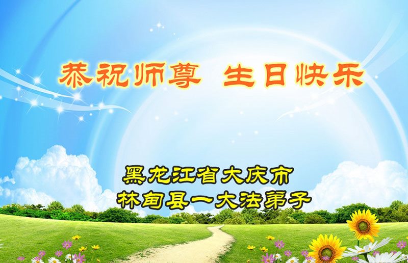 黑龍江省大慶市林甸縣一大法弟子祝師尊生日快樂!