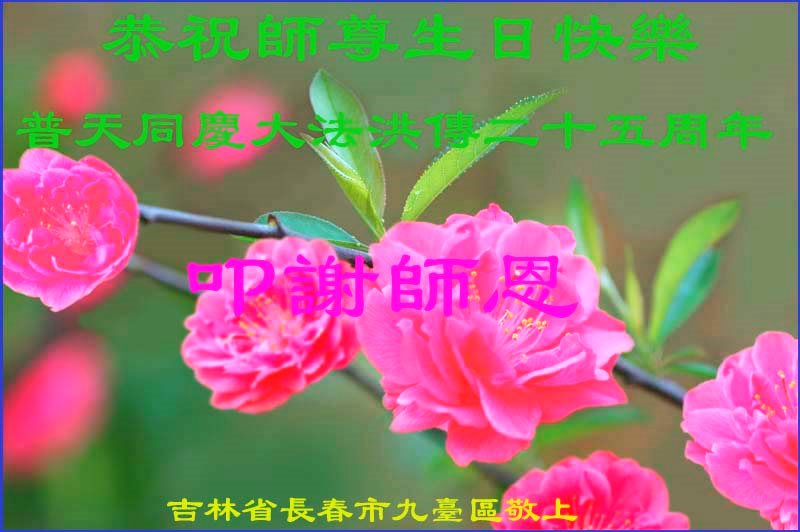 吉林省長春市九台區大法弟子恭祝師尊生日快樂!普天同慶法輪大法洪傳二十五週年!