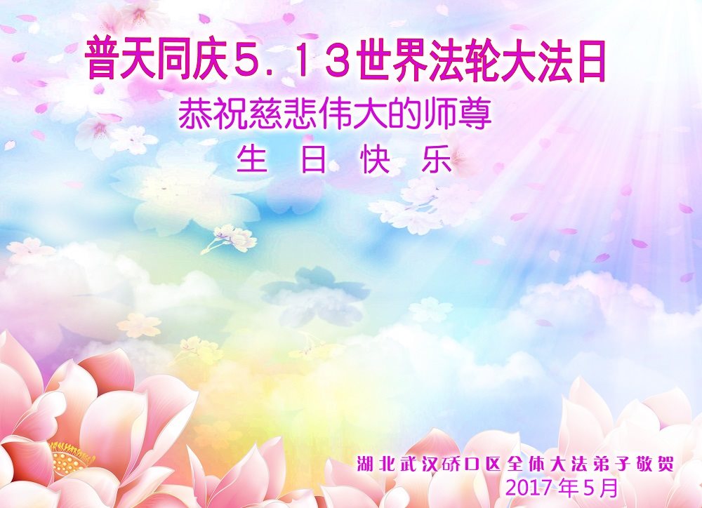 湖北武漢礄口區全體大法弟子恭賀世界法輪大法日!