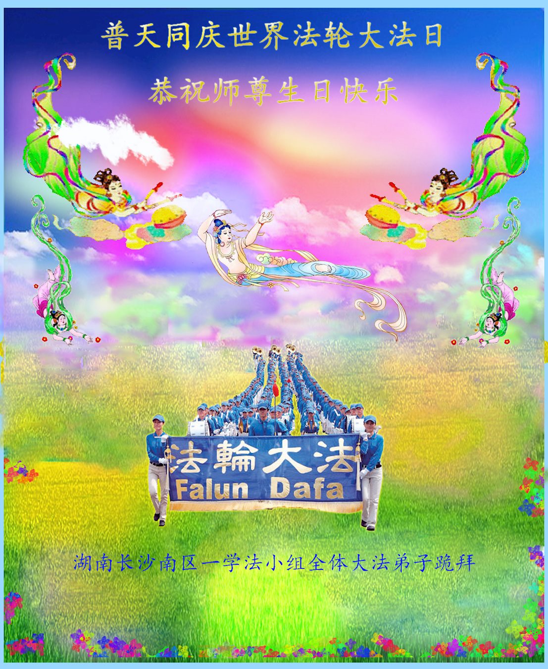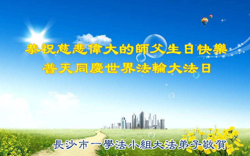 湖南長沙南區一學法小組全體大法弟子恭賀世界法輪大法日