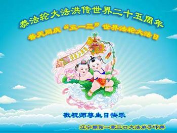 遼寧省朝陽市北票市一家大法弟子恭賀法輪大法日暨師尊華誕!