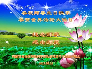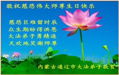 內蒙赤峰閆同修及全家向師父問候,祝偉大的師尊生日快樂!祝賀世界法輪大法日。我及女兒同修一家聽師父的話做好三件事,救度更多的眾生,請師父放心。