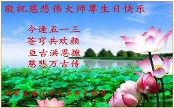 恭祝慈悲偉大的師父生日快樂!慶賀法輪大法洪傳世界二十五週年!天人同賀。弟子一定謹遵師尊教誨,緊隨正法進程,完成救度眾生、助師正法的大願!