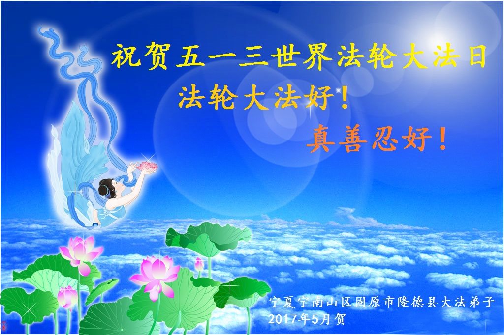 寧夏固原市隆德縣大法弟子全家恭祝師尊生日快樂!恭賀世界法輪大法日!大法洪傳25年,感恩師尊將這部宇宙大法傳予弟子,並時時看護著我們。弟子一定努力修好自己,使救人更有力度。