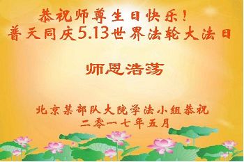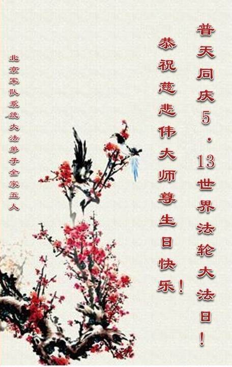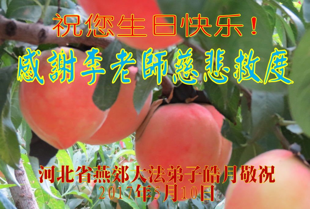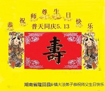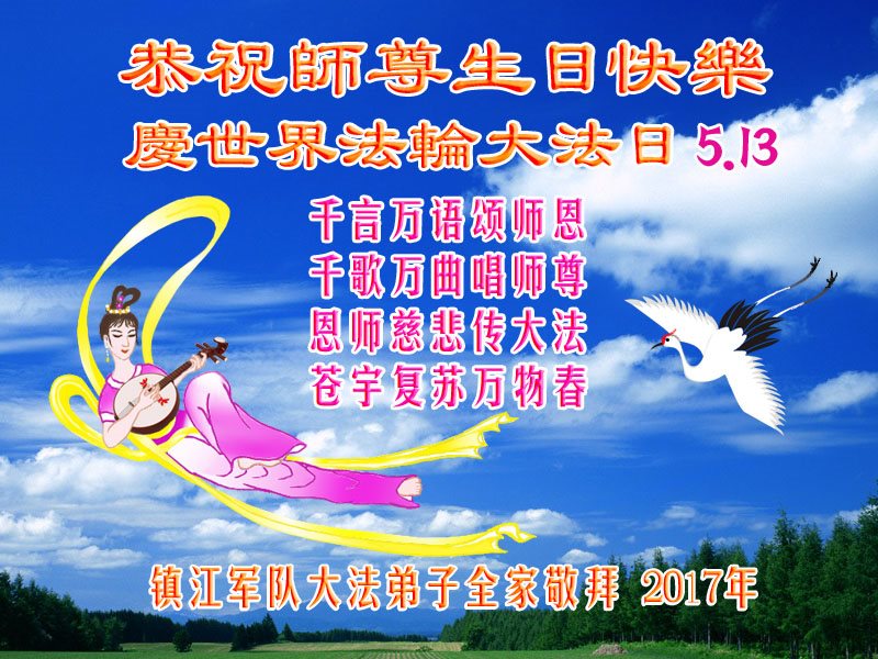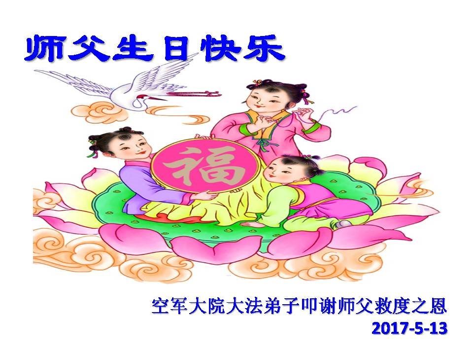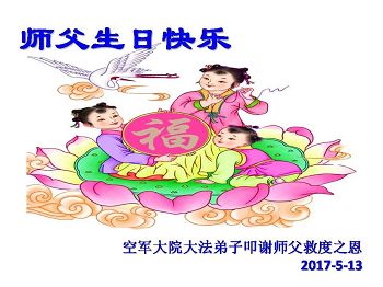 師父好!師父您辛苦了!我是軍隊系統的大法弟子,是您的老弟子,在江澤民殘酷鎮壓法輪大法之時,我沒有放棄,堅持修煉,講真相。我感謝您救度了我!您就快過生日了,弟子衷心的祝師父生日快樂!