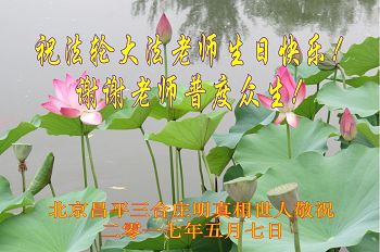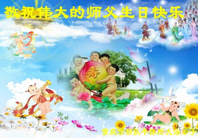 弟子很想念您,弟子謝謝師尊給我們淨化身體,淨化思想,我們總覺的我是世界上最幸福的人,我們有一個這樣最偉大的慈悲的師尊。我們今後一定堅定的走好最後一步,來報答師尊。那些明白真相的世人要我替他們向師尊問好!恭祝師尊生日快樂!