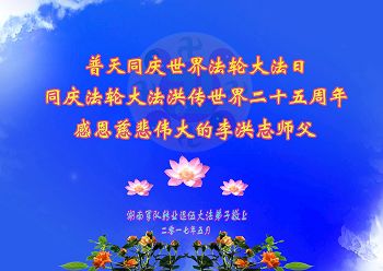 湖南軍隊轉業退伍大法弟子恭賀世界法輪大法日,感恩叩謝慈悲偉大的李洪志師父!