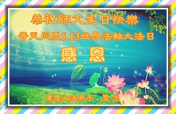 重慶一大法弟子恭祝師父生日快樂!普天同慶世界法輪大法日!