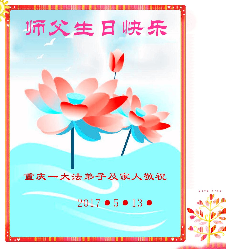 重慶一大法弟子及家人恭祝師父生日快樂!