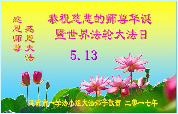 吉林省延邊州延吉市一學法小組大法弟子恭祝慈悲的師尊華誕暨世界法輪大法日!