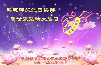 大法弟子圓藏在法輪大法日到來之際,恭祝師尊生日快樂!弟子誠心叩拜恩師,感謝師尊慈悲苦度!我向師尊保證決不錯過這千萬年的機緣,我要跟師尊回家!弟子叩拜師尊!