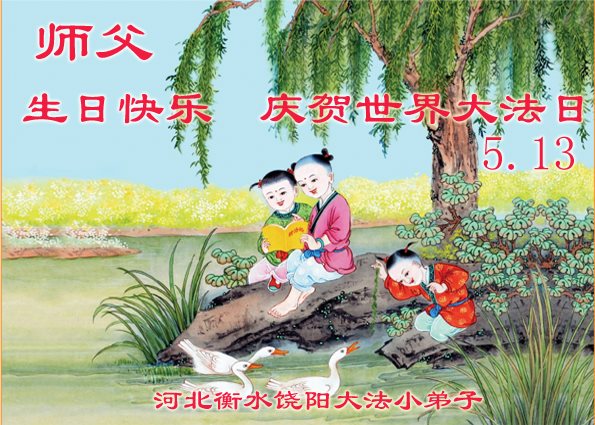 河北省衡水市饒陽大法小弟子恭祝慈悲偉大的師尊生日快樂!恭賀「5.13」世界法輪大法日!同祝同頌法輪大法洪傳世界二十五週年!