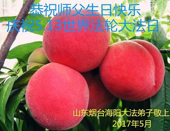 山東煙台芝罘區全體大法弟子恭祝慈悲偉大的師父生日快樂!普天同慶世界法輪大法日!