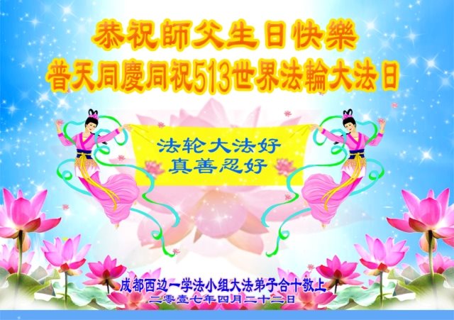 四川成都市西門一學法小組恭祝師父生日快樂!