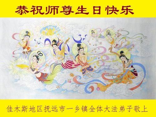黑龍江佳木斯地區撫遠一鄉鎮全體大法弟子恭祝師尊生日快樂!