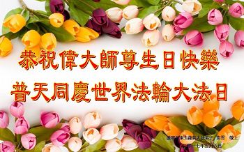 請師父您放心,我們牢記救度眾生的使命,返本歸真、同化真善忍的決心不會動搖!在這佛光普照、普天同慶的聖日,我們真心地謝謝師父!謝謝師父的救度之恩!恭祝師父生日快樂!