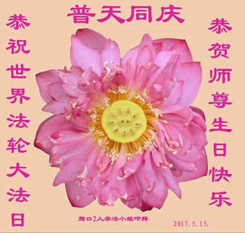 河南省周口2人學法小組大法弟子恭賀法輪大法日